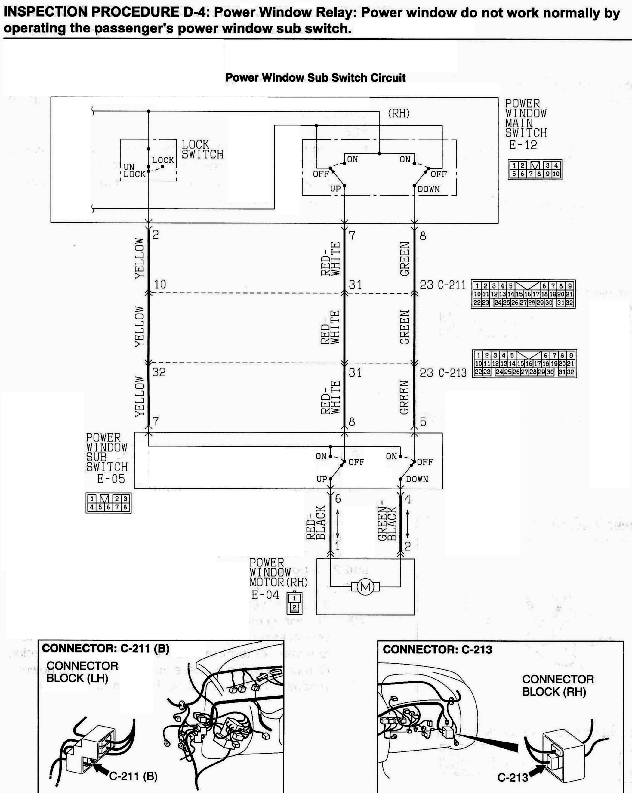INSPECTION PROCEDURE D-4: Power Window Relay: Power window do not work normally by operating the passenger's power window sub switch.