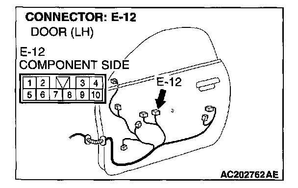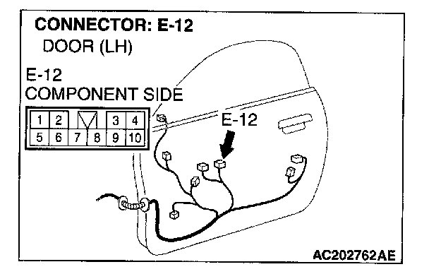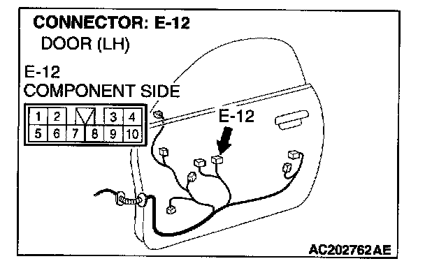 STEP 7. Check the wiring harness between power window main switch connector E-12 (terminal 2) and power window sub-switch connector E-05
