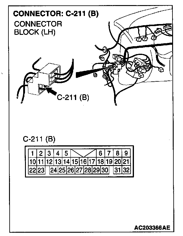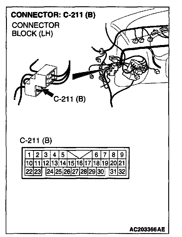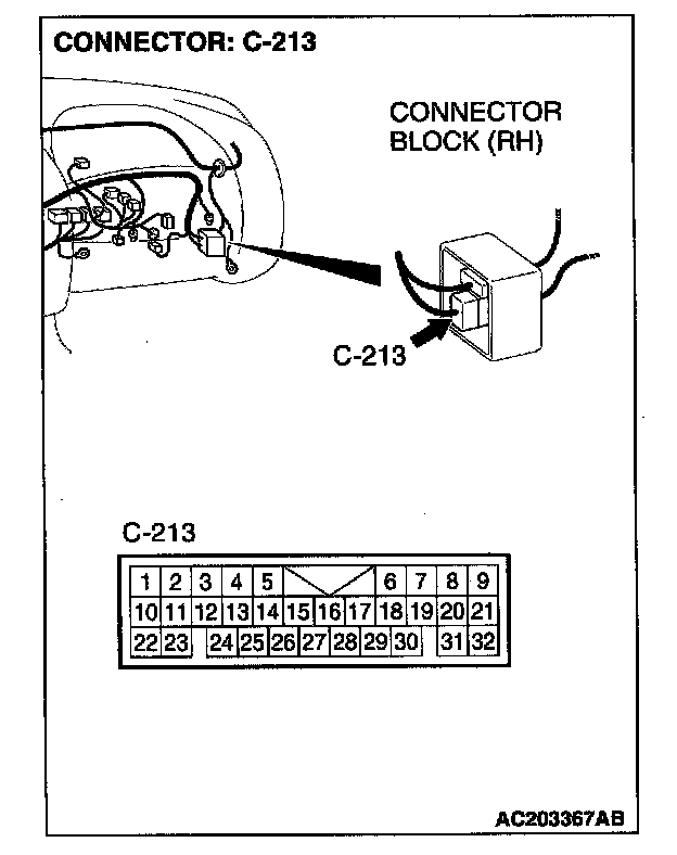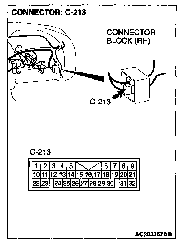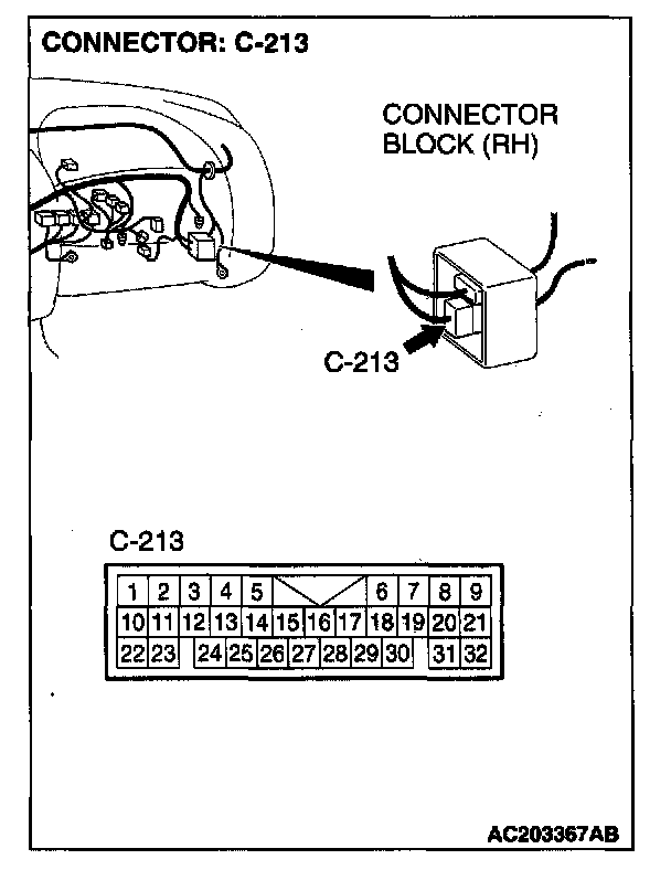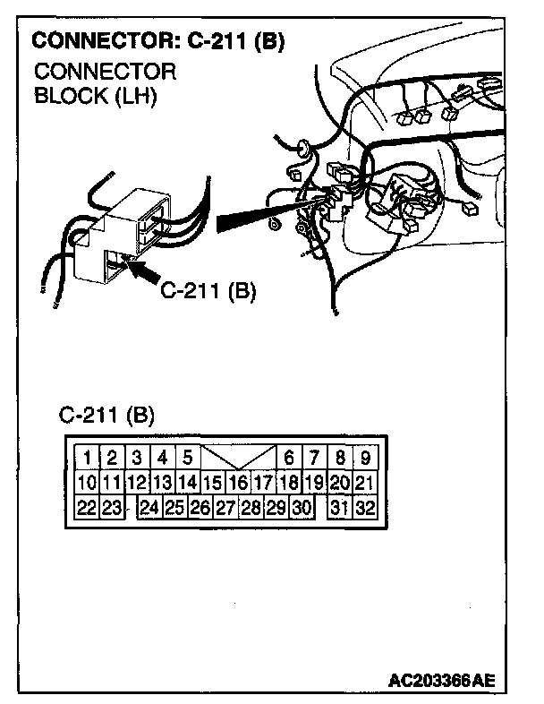 NOTE: Also check intermediate connectors C-211 and C-213 for loose, corroded or damaged terminals, or terminals pushed back in the connectors. If intermediate connector C-211 or C-213 is damaged, repair or replace the damaged components) as described in Harness Connector Inspection