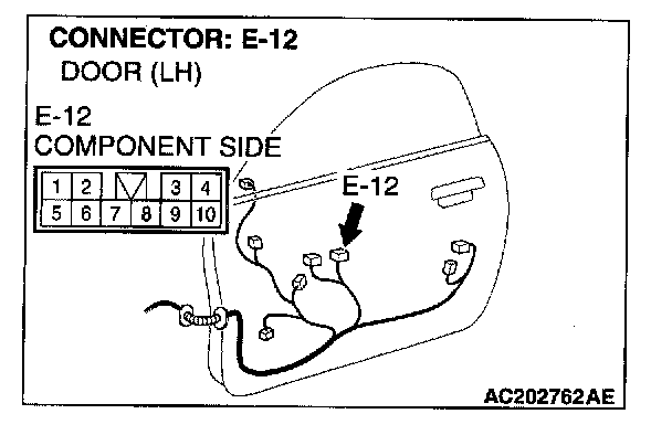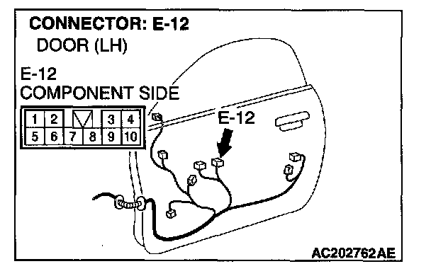 STEP-10, Check the wiring harness between power Window main switch connector E-12 (terminal 8) and power window sub-switch connector E-05