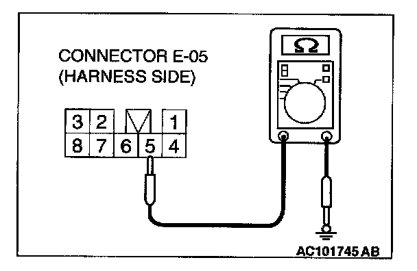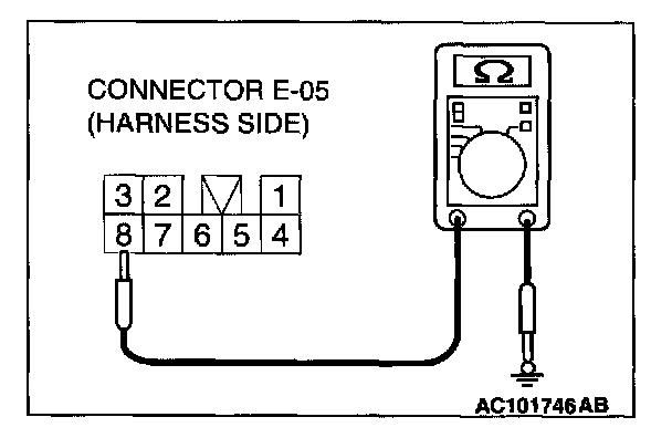 STEP 8. Check the ground circuit to the power window sub-switch. Test at power window sub-switch connector E-05.