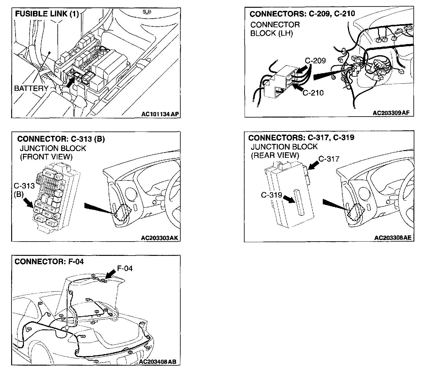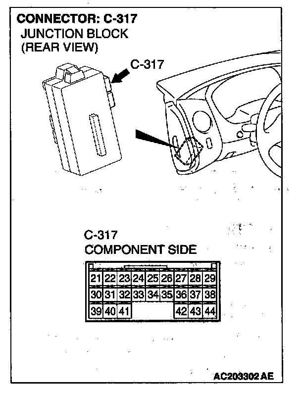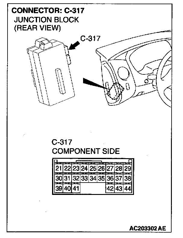 STEP 8. Check trunk lid opener actuator assembly connector F-04 and ETACS-ECU connector C-317 for loose, corroded or damaged terminals,