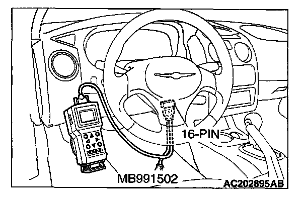 1. Connect scan tool MB991502 to the data link connector.