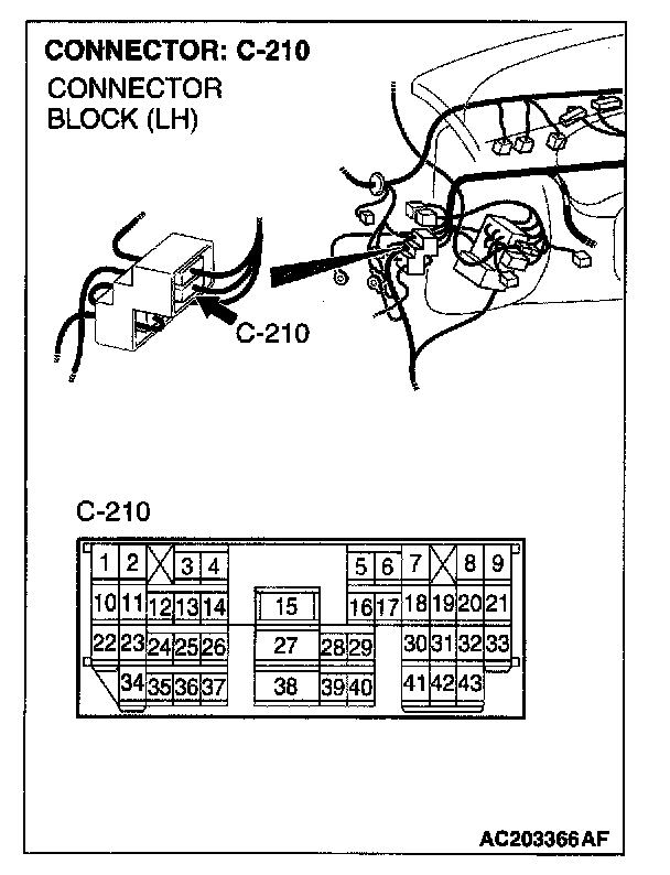 NOTE: Also check intermediate connector C-210 for loose, corroded, or damaged terminals, or terminals pushed back in the connector. If intermediate connector C-210 is damaged, repair or replace the damaged components) as described in Harness Connector Inspection.
