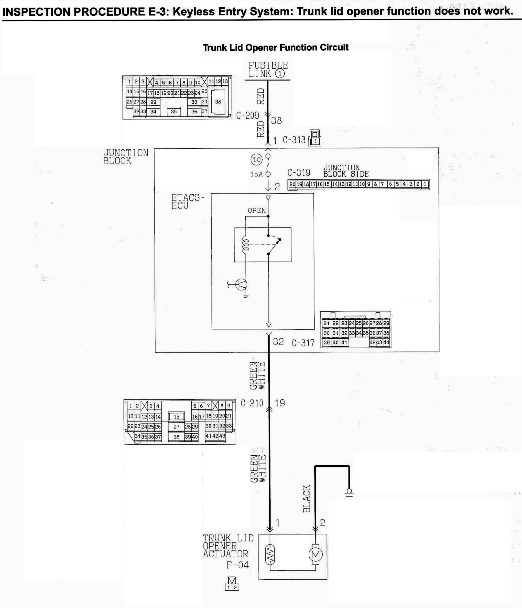 INSPECTION PROCEDURE E-3: Keyless Entry System: Trunk lid opener function does not work.