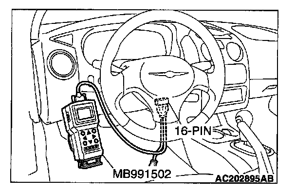 CAUTION : To prevent damage to scan tool MB991502, always turn the ignition switch to the "LOCK" (OFF) position before connecting or disconnecting scan tool MB991502.