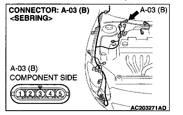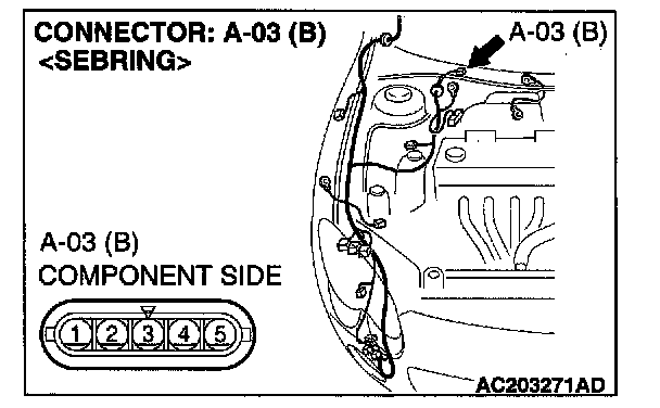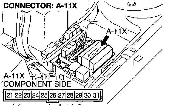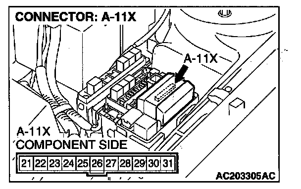 STEP 5. Check windshield wiper motor connector A-03 and front-ECU connector A-11X for loose, corroded or damaged terminals, or terminals