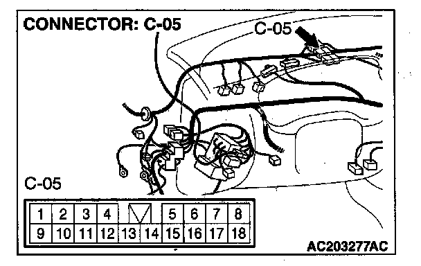 NOTE: Also check intermediate connector C-05 for loose, corroded, or damaged terminals, or terminals pushed back in the connector. If intermediate connector C-05 is damaged, repair or replace the damaged components) as described in Harness Connector Inspection.