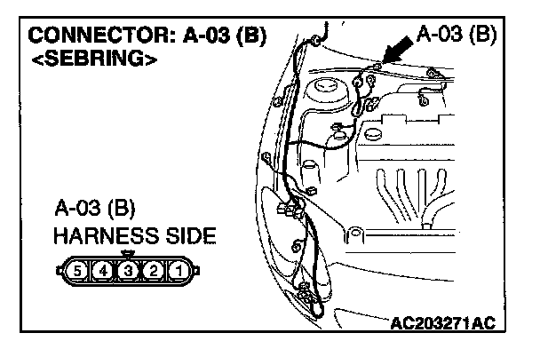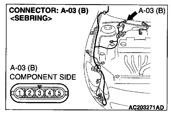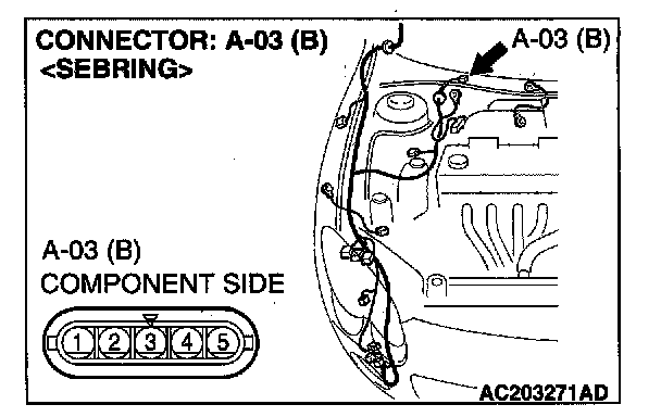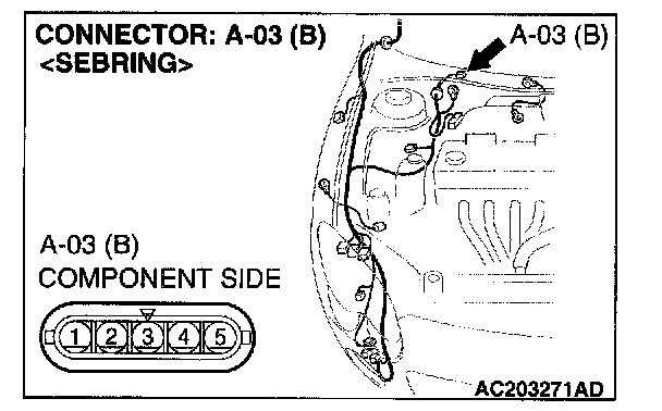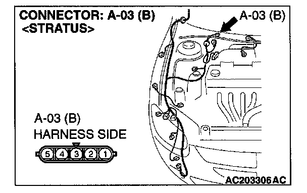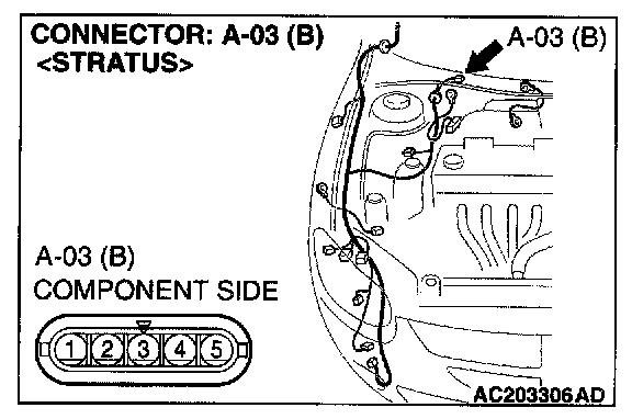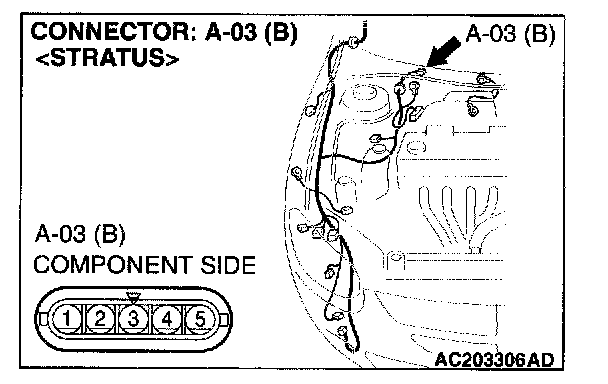 STEP 3. Check windshield wiper motor connector A-03 for loose, corroded or damaged terminals, or terminals pushed back in the connector.