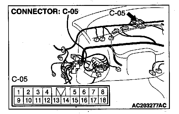 NOTE: Also check intermediate connector C-05 for loose, corroded, or damaged terminals, or terminals pushed back in the connector. If intermediate connector C-05 is damaged, repair or replace the damaged components) as described in Harness Connector Inspection.