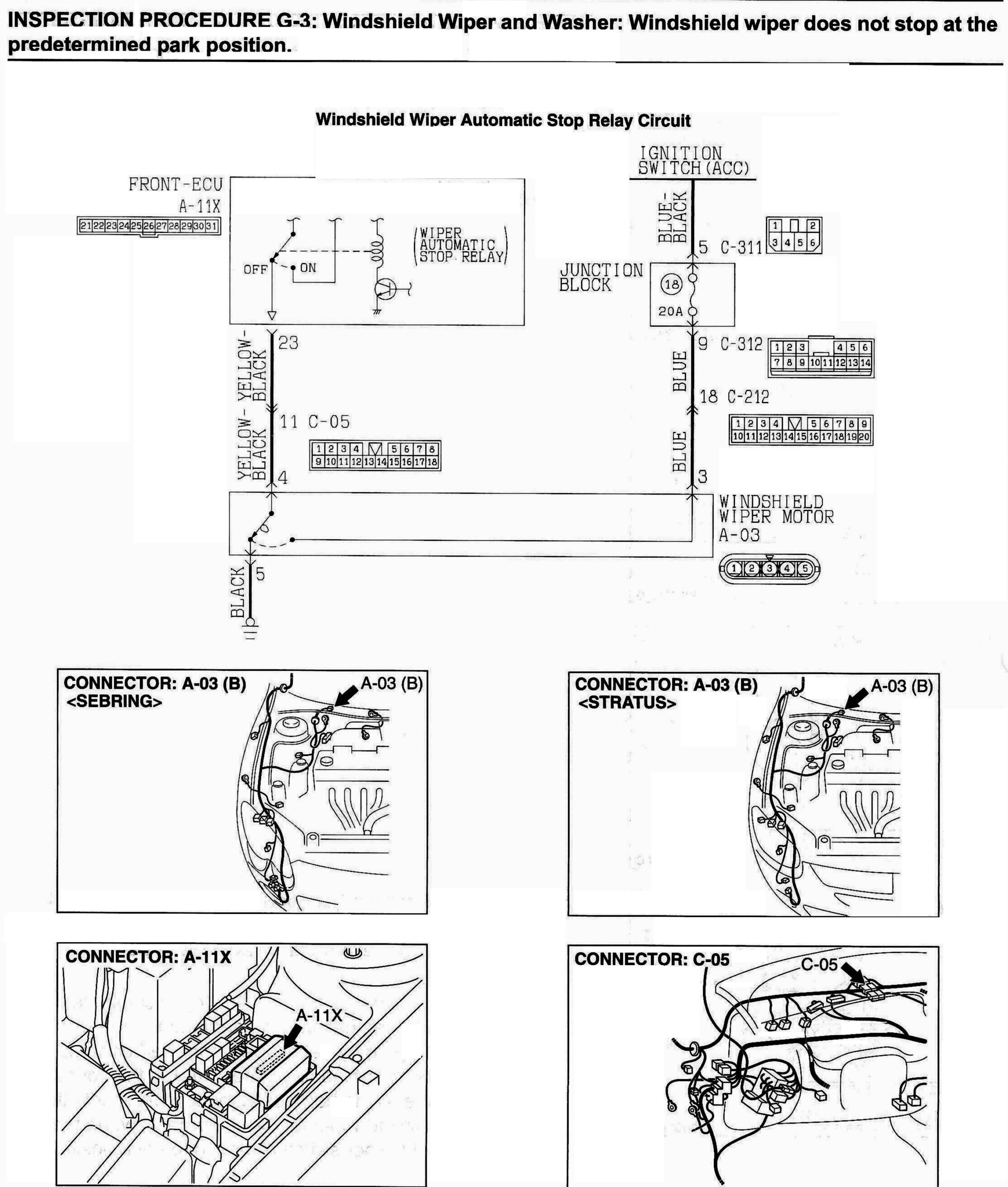 INSPECTION PROCEDURE G-3: Windshield Wiper and Washer: Windshield wiper does not stop at the predetermined park position.