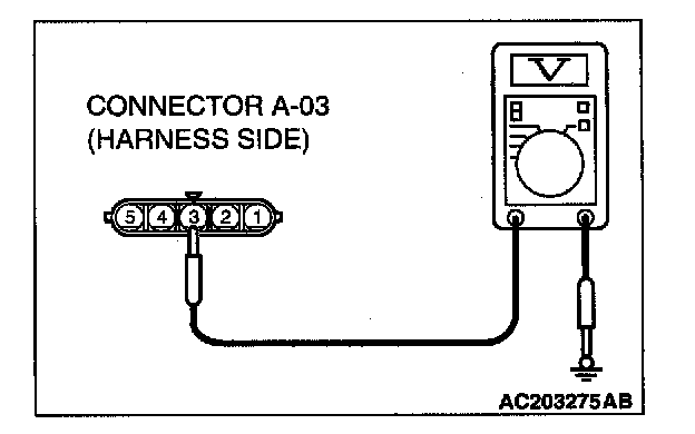 1. Disconnect windshield wiper motor connector A-03 and measure the voltage available at the wiring harness side of the connector.