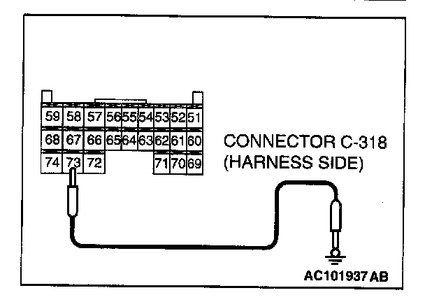 STEP 11. Check the wiring harness between combination meter connector C-101 (terminal 7) and ETACS-ECU connector C-318 (terminal 73).