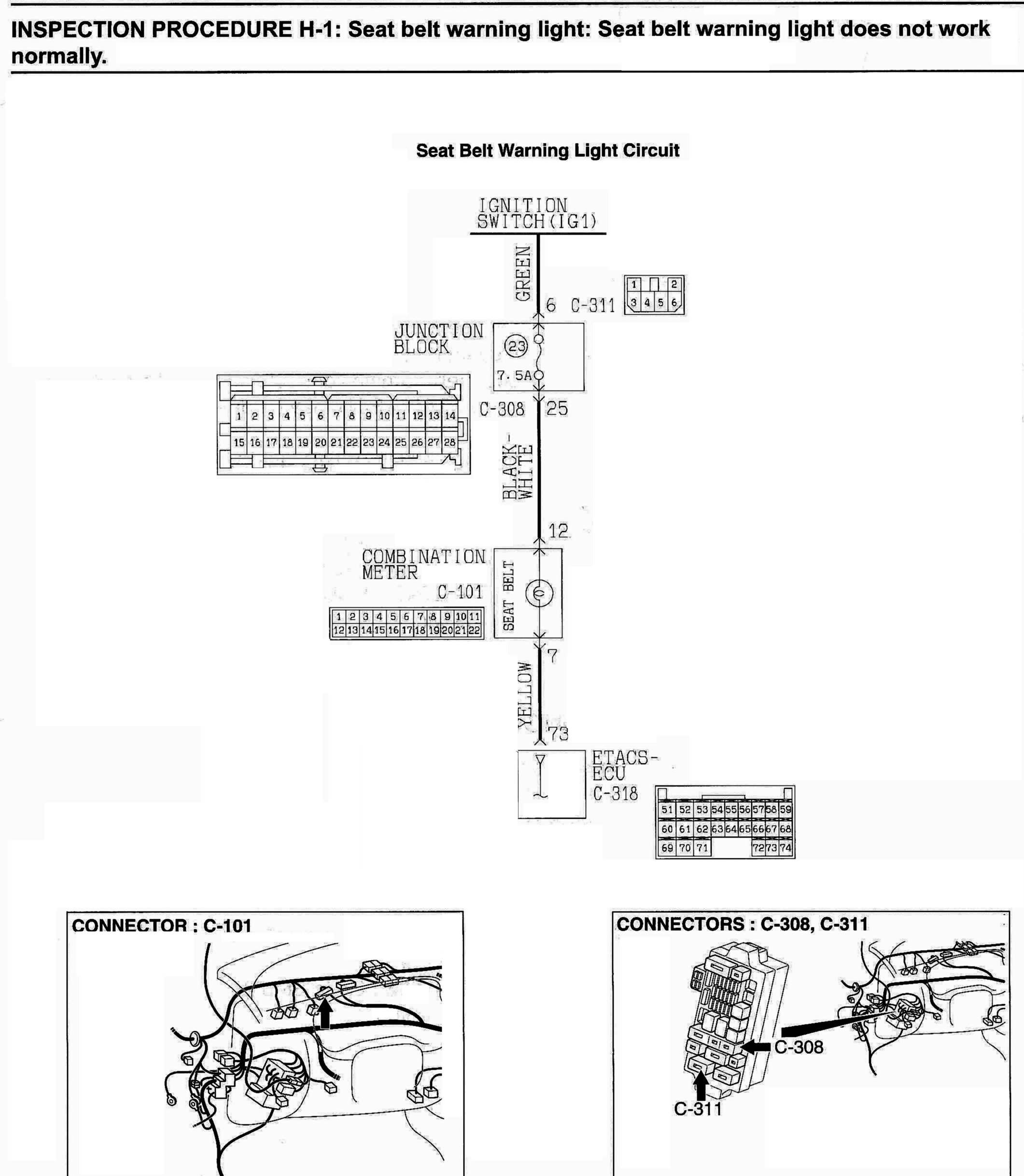 INSPECTION PROCEDURE H-1: Seat belt warning light: Seat belt warning light does not work normally.