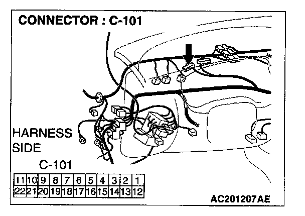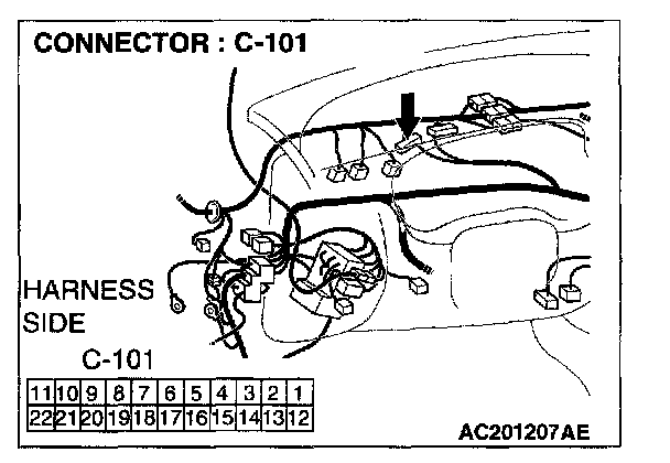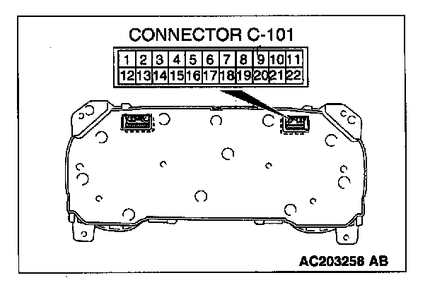 STEP 8. Check the combination meter connector C-101 for loose, corroded or damaged terminals, or terminals pushed back in the connector.