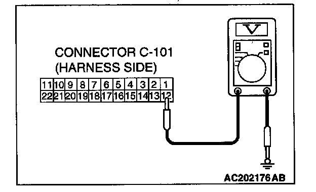 1. Disconnect the combination meter connector C-101 and measure the voltage available at the wiring harness side of the connector.