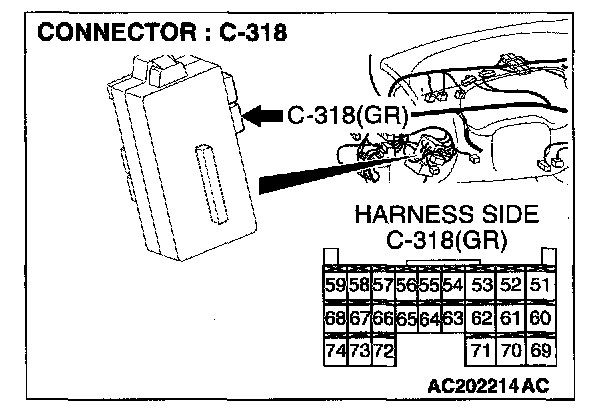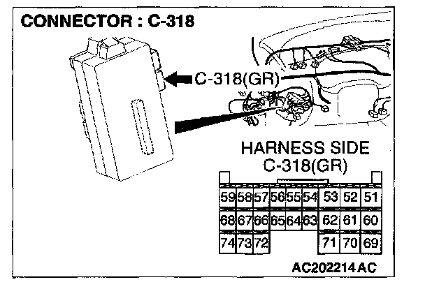 1. Disconnect the ETACS-ECU connector C-318 and measure at the wiring harness side.