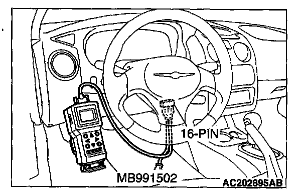 CAUTION : To prevent damage to scan tool MB991502, always turn the ignition switch to the "LOCK" (OFF) position before connecting or disconnecting scan tool MB991502.