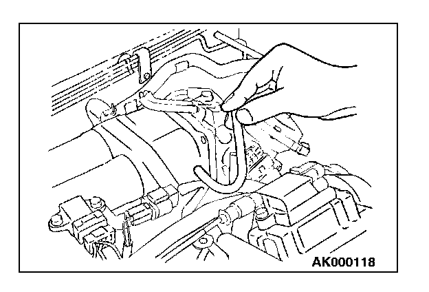 1. Remove the union joint and bolt from special tool MD998709 (adaptor hose) and instead attach special tool MD998742 (hose adaptor) to the adaptor hose.