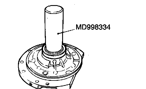 2. Use special tool MD998334 to tap the oil seal in the oil pump body.