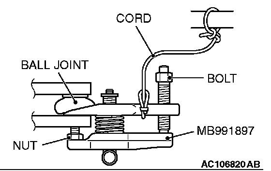 - Do not remove the nut from ball joint. Loosen it and use special tool MB991897 to avoid possible damage to ball joint threads.
