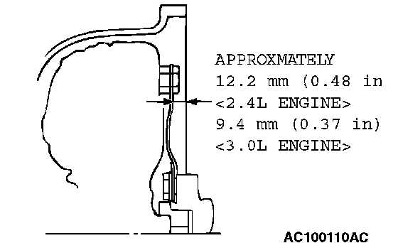 Insert the torque converter into the transaxle oil pump until the dimension is approximately 12.2 mm (0.48 inch) <2.4L ENGINE>, approximately 9.4 mm (0.37 inch) <3.0L ENGINE>. Install the transaxle assembly to the engine.