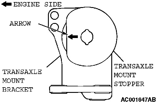 Install the transaxle mount stopper so that the arrow mark points as shown in the illustration.