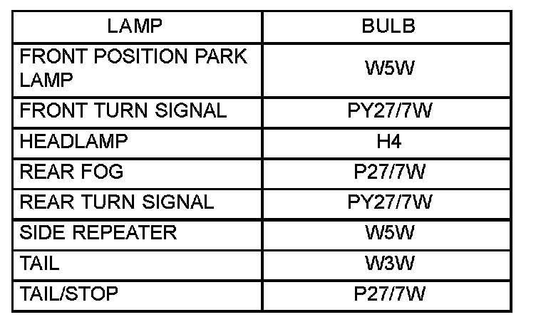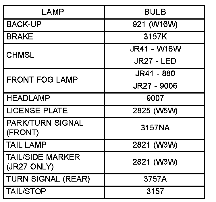 - Do not use bulbs that have a higher candle power than the bulb listed in the Bulb Application Table. Damage to lamp can result.