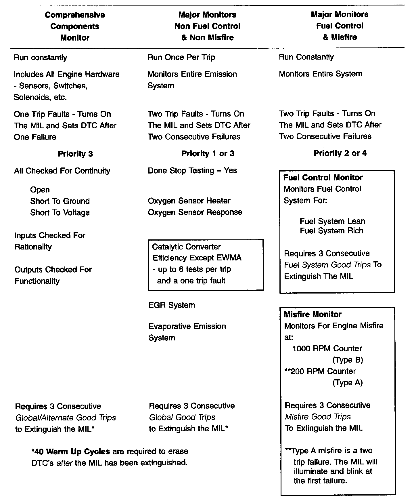 B. Specific criteria must be met for each monitor to run. Each monitor has a Pre-Test screen to assist in running the monitor.For additional information, refer to the Chrysler Corporation Technical Training Workbook titled On Board Diagnostics: OBDII/EOBD, part number 81-699-01050.