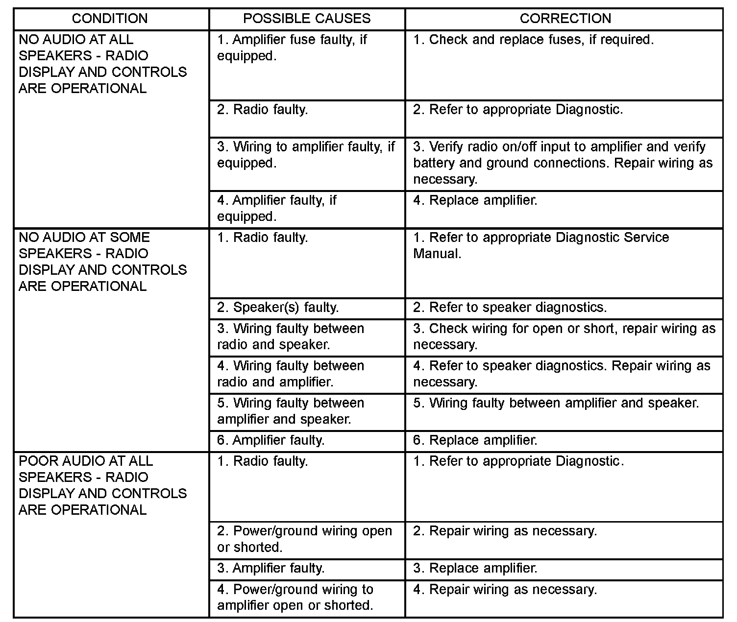Any diagnosis of the Audio system should begin with the use of the DRB III(R) diagnostic tool. For information on the use of the DRBIII(R) , refer to the appropriate Diagnostic.