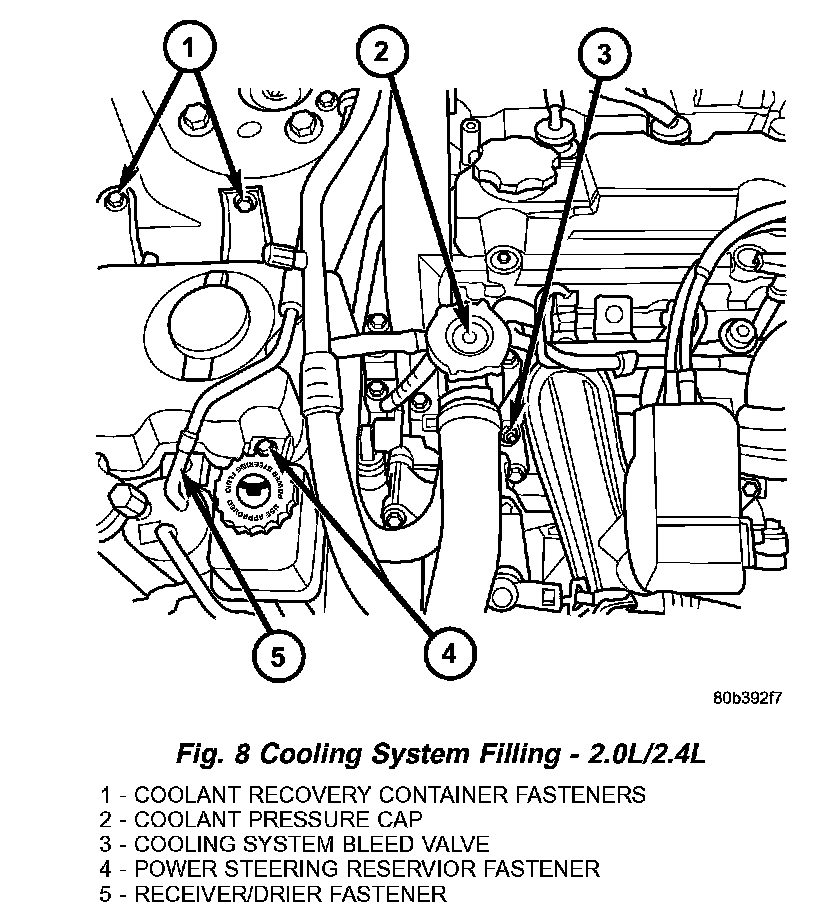 NOTE: The engine cooling system will push any remaining air into the pressure container within about one half hour of normal driving. As a result, a drop in coolant level in the pressure container may occur.