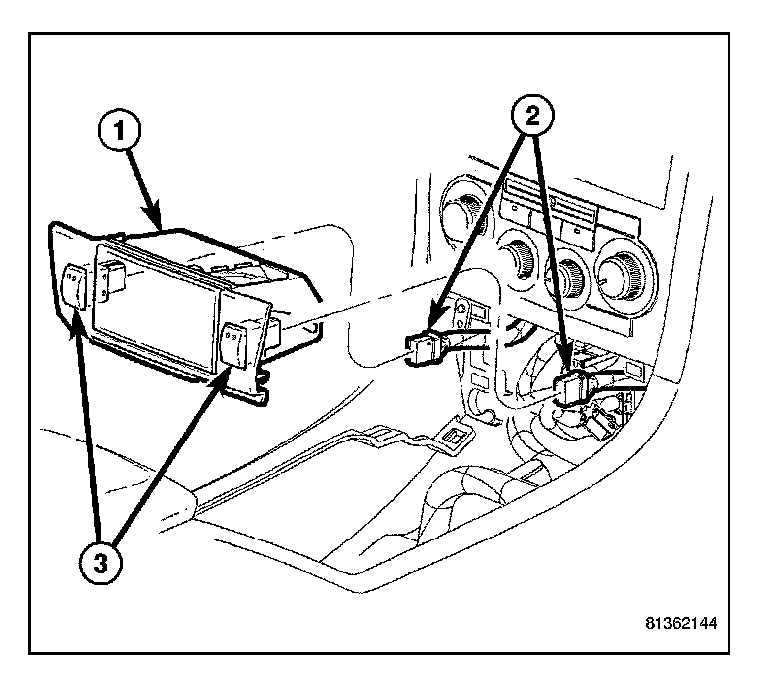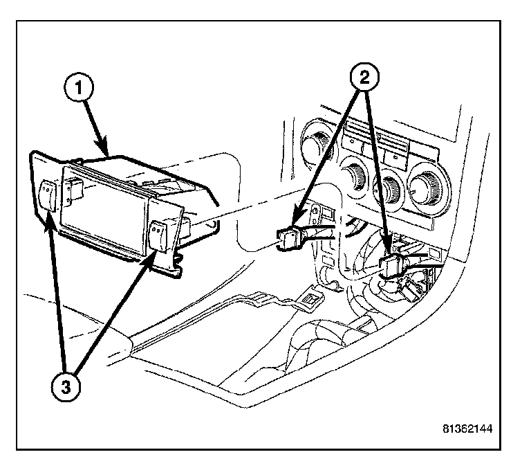 1. From the front of the ash receiver (1), gently push the heated seat switch (3) in through the front of the bezel.