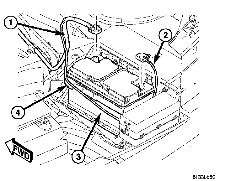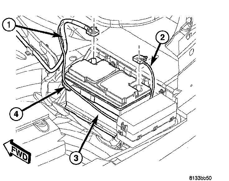 1. Disconnect and isolate battery negative cable (2) from battery post.