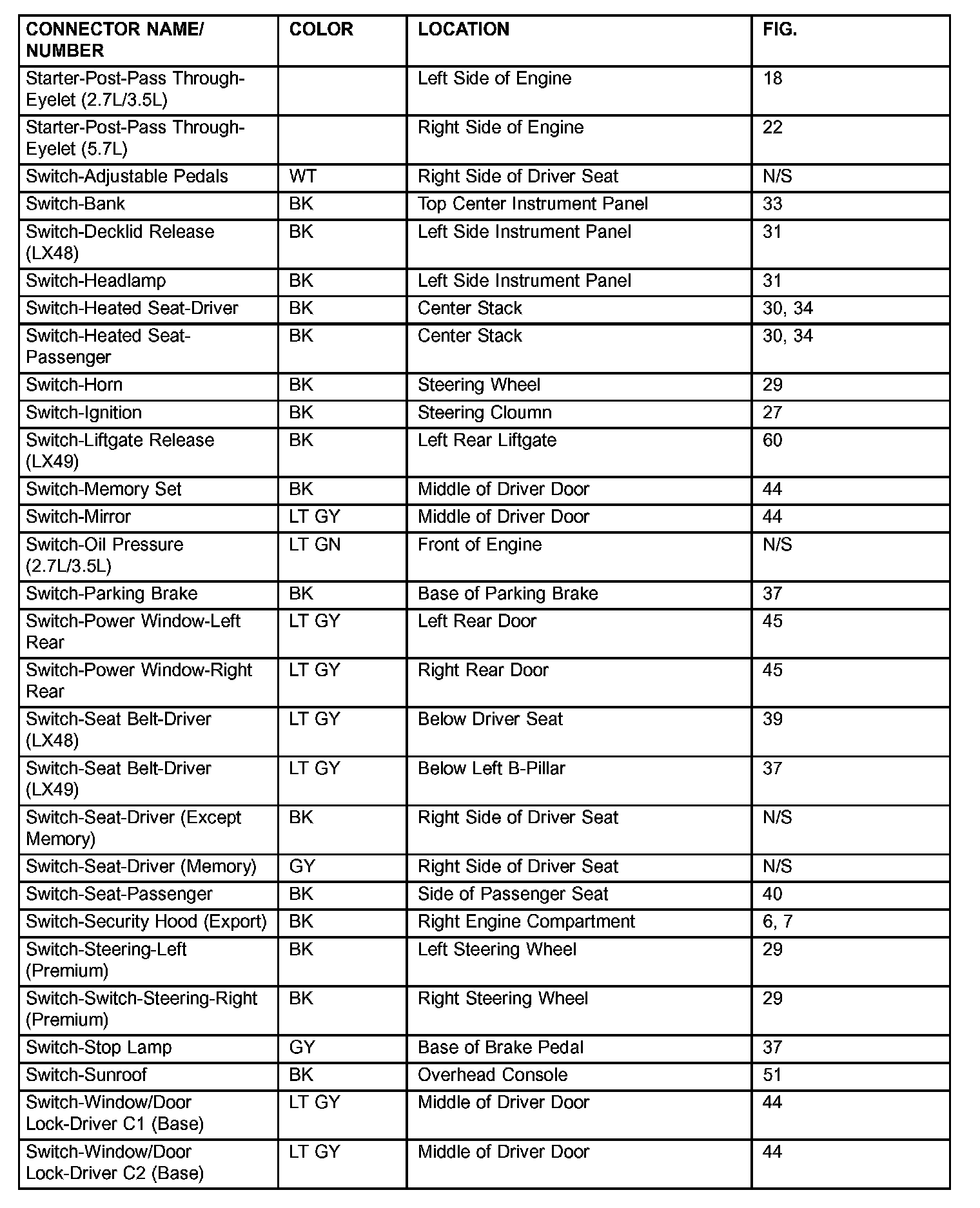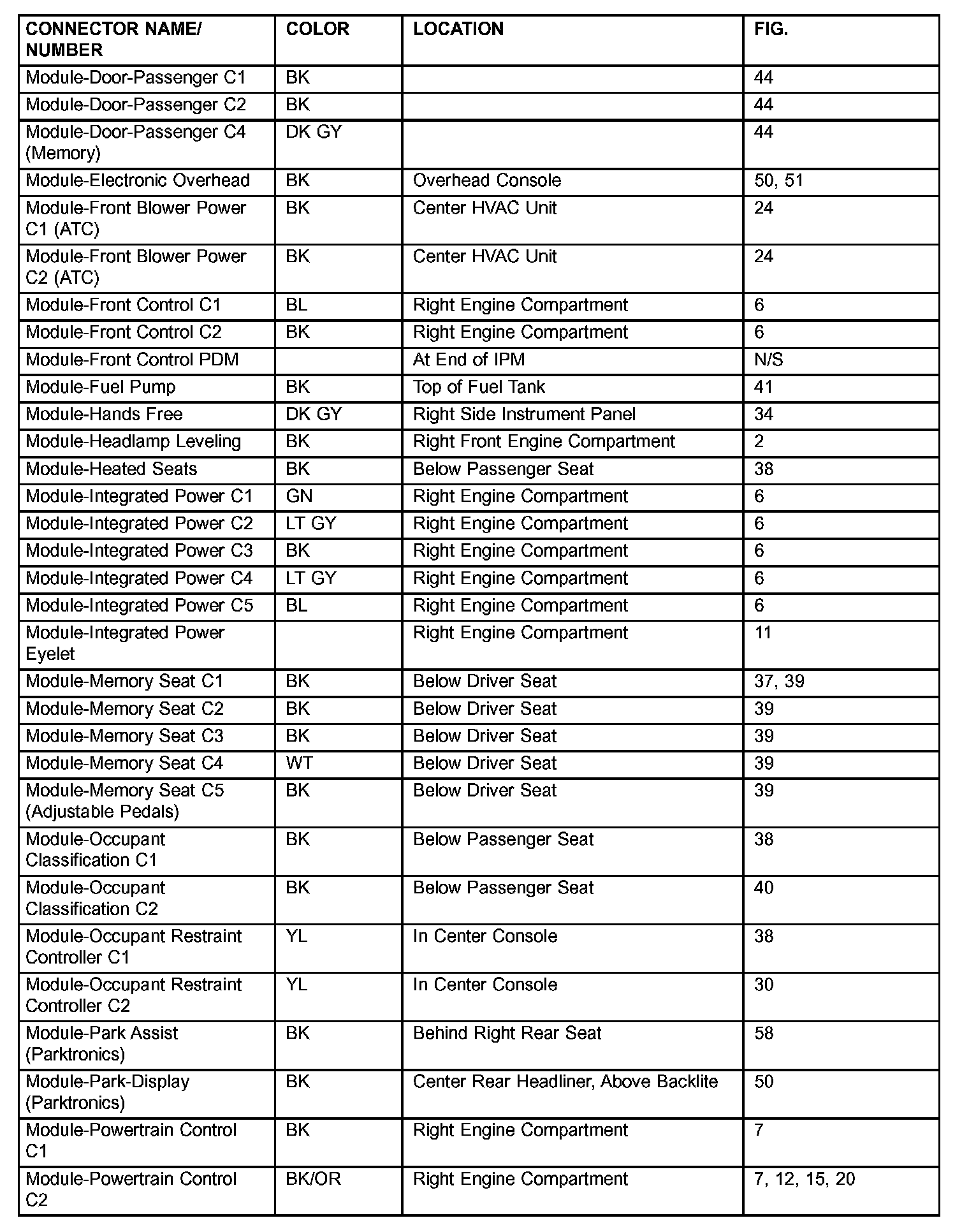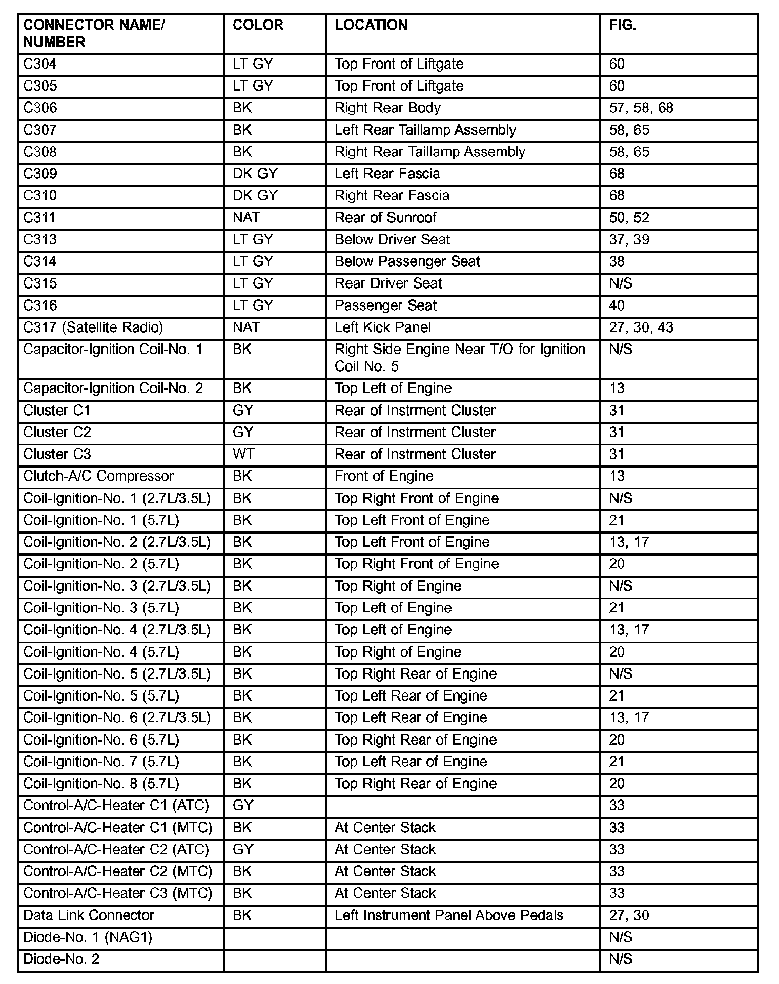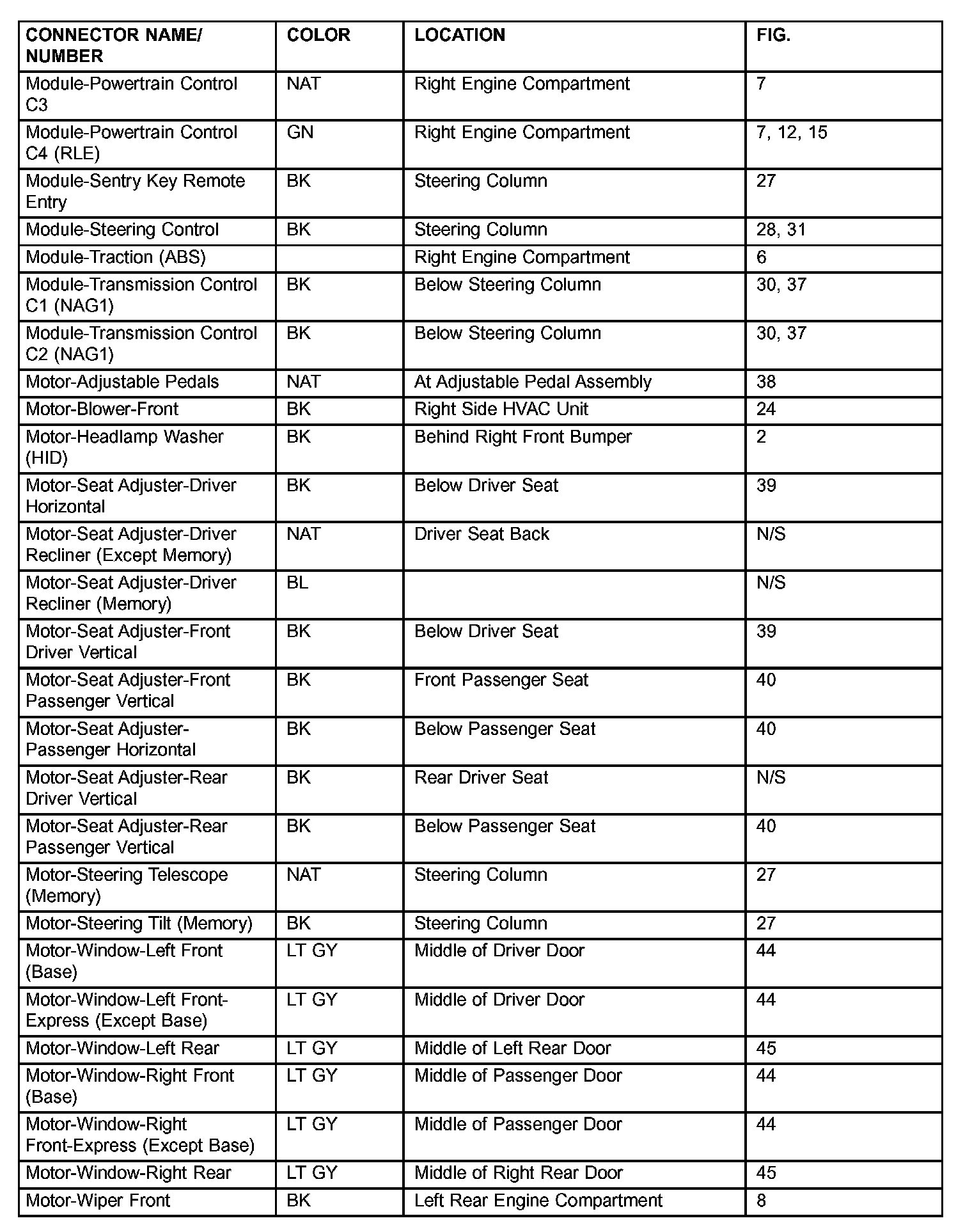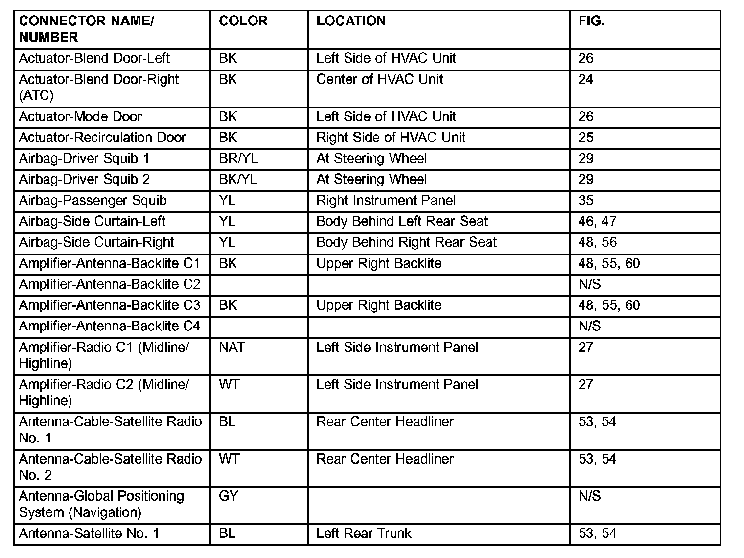 If a link on the index chart to a figure is not provided, that means that the connector and/or figure in question does NOT apply to the vehicle model selected.