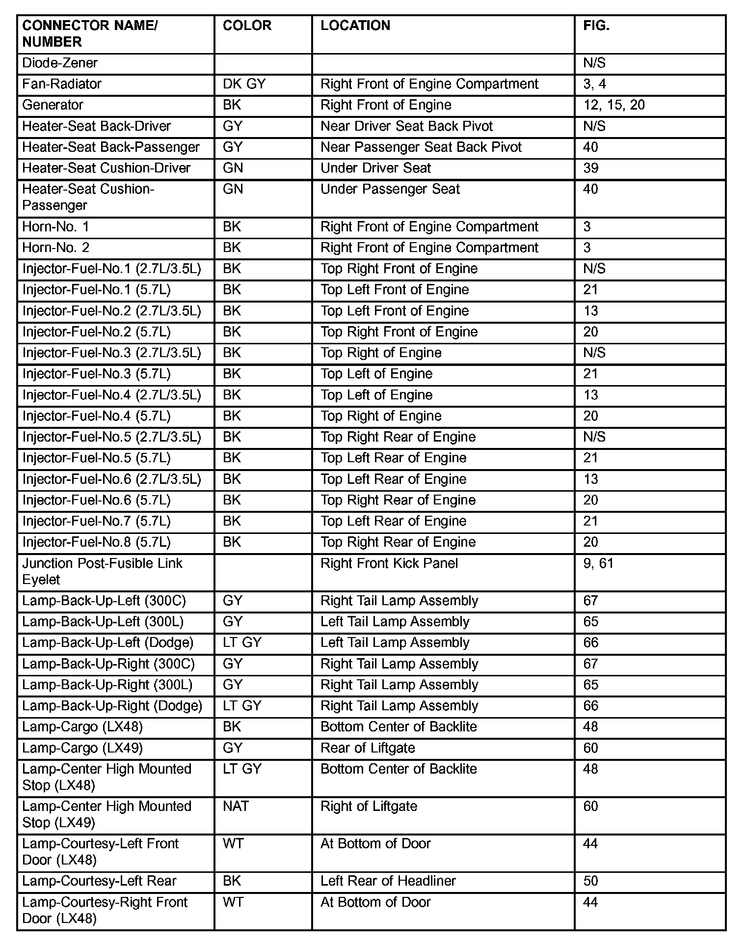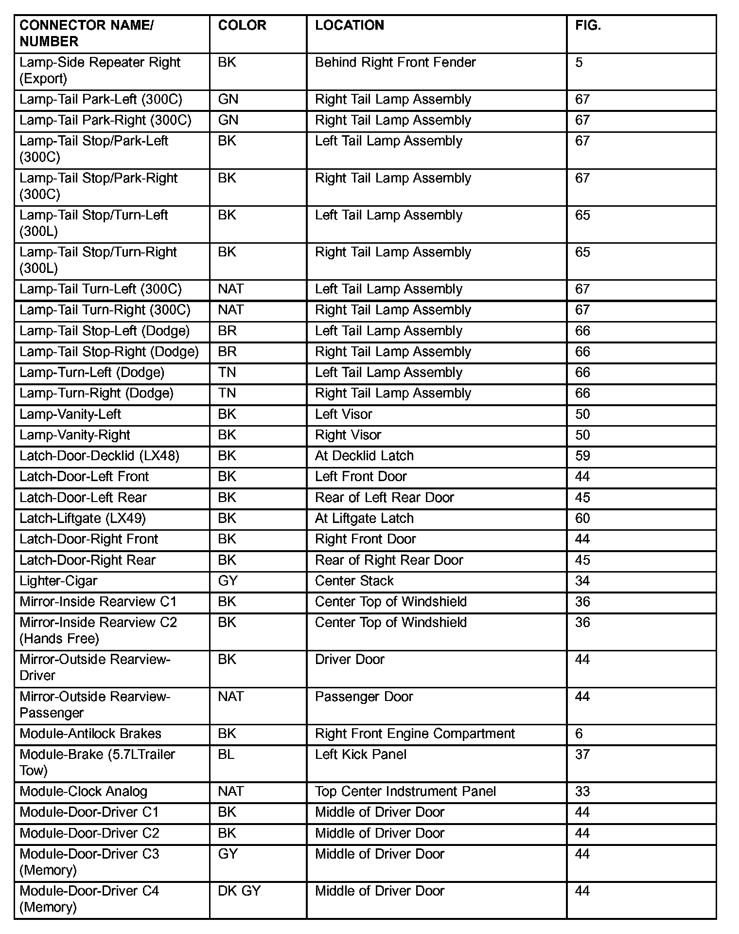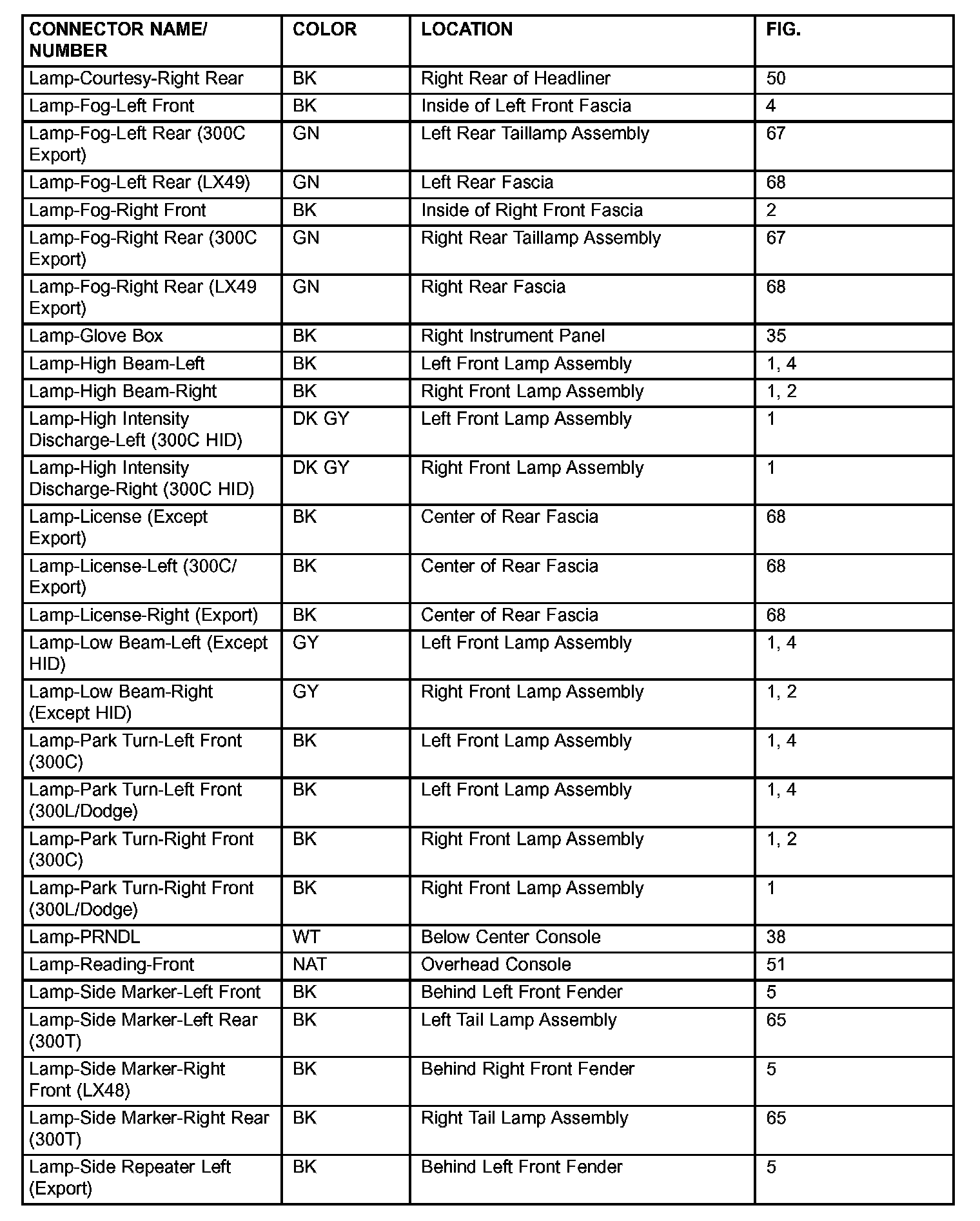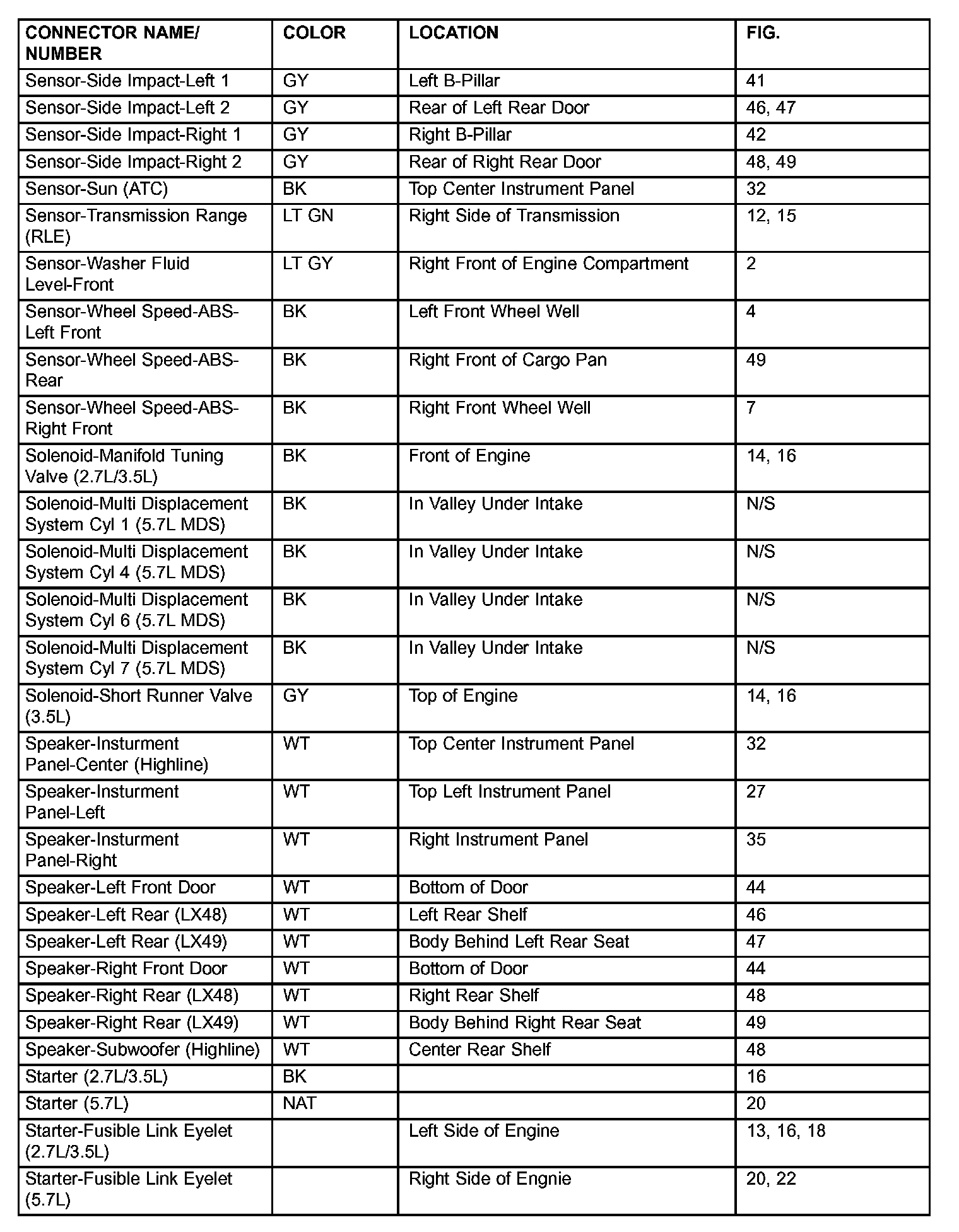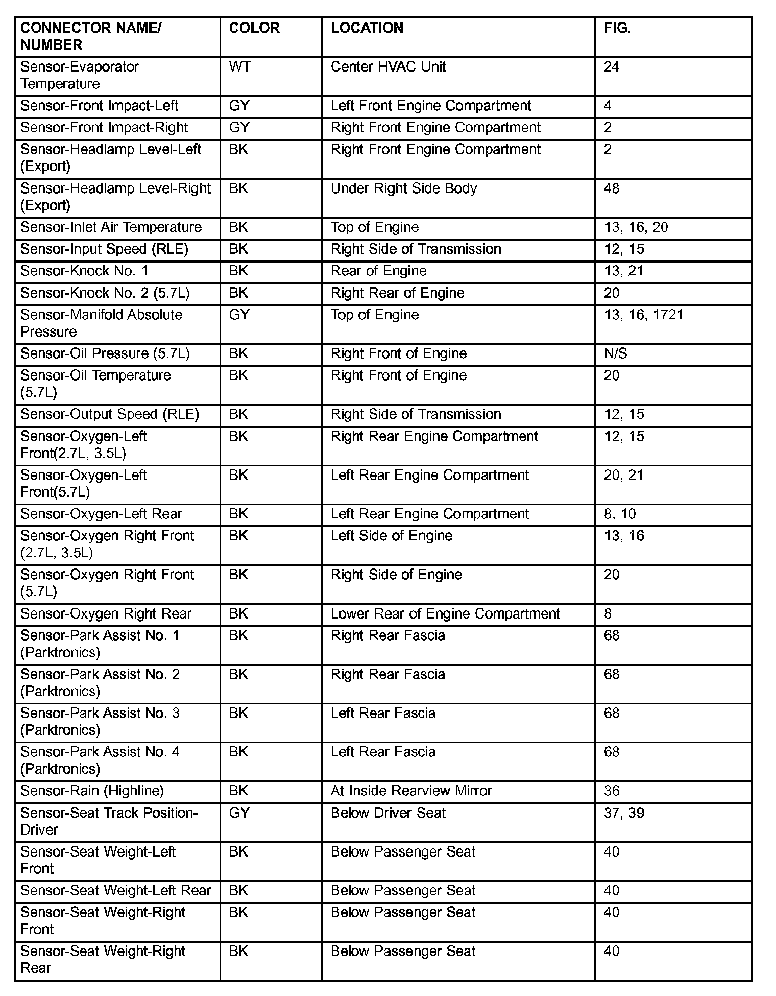 If a link on the index chart to a figure is not provided, that means that the connector and/or figure in question does NOT apply to the vehicle model selected.