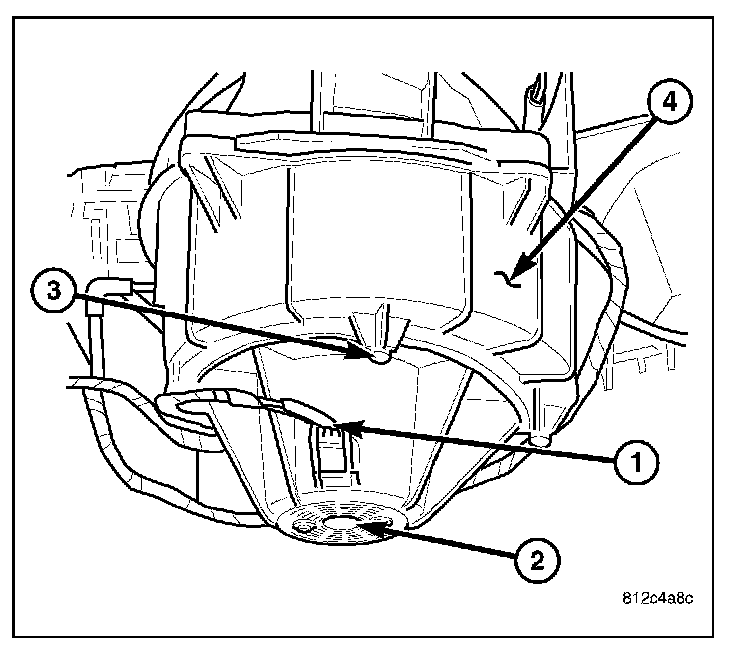 4. Remove the four screws (3) that secure the blower motor to the HVAC housing (4).