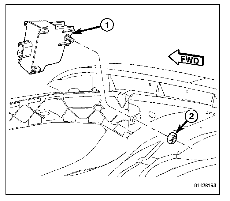 3. Remove the one nut (2) holding the module (1) to the bracket.