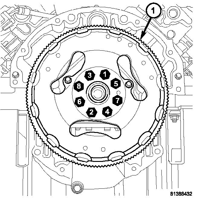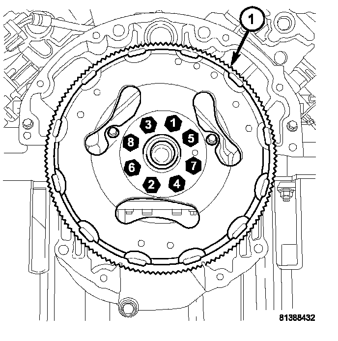 2. Remove the bolts and flexplate (1).