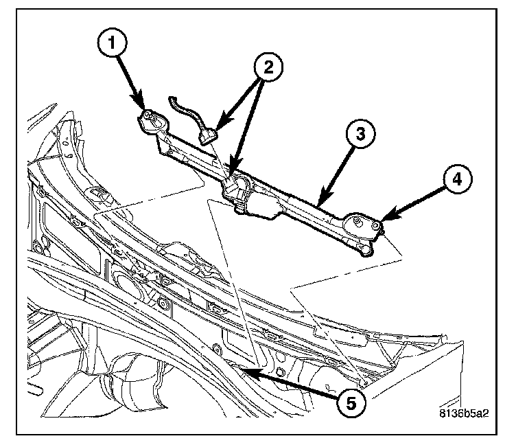 5. Place wiper motor in its mounting location making sure that the pocket nuts are in place.