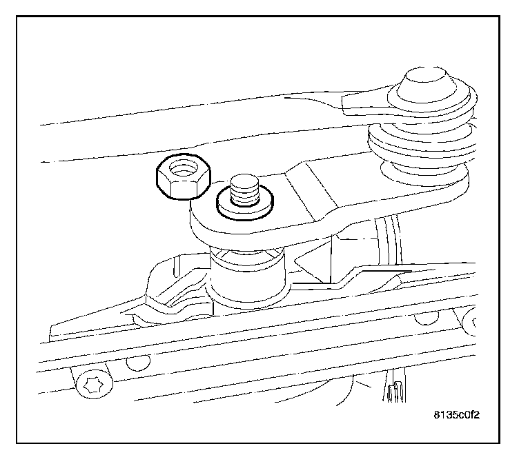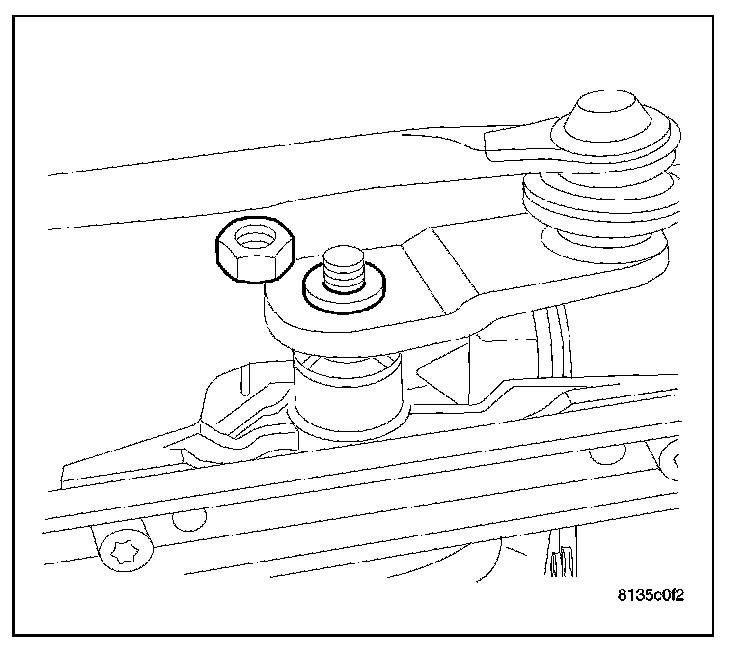 3. With front wiper module on bench or in vise, remove the one nut attaching the bellcrank to the motor shaft.