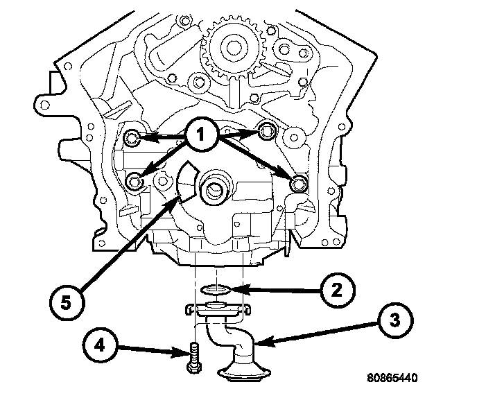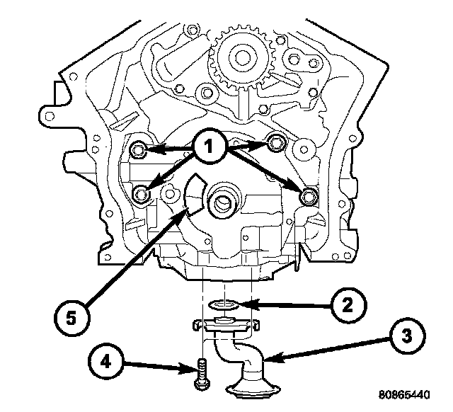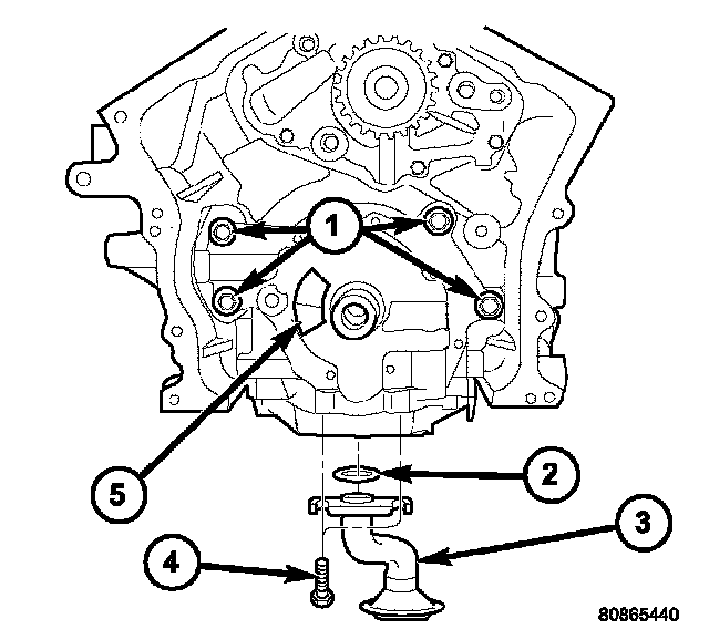 5. Remove oil pick-up tube (3) and O-ring (2).