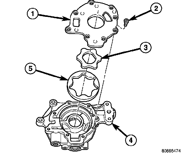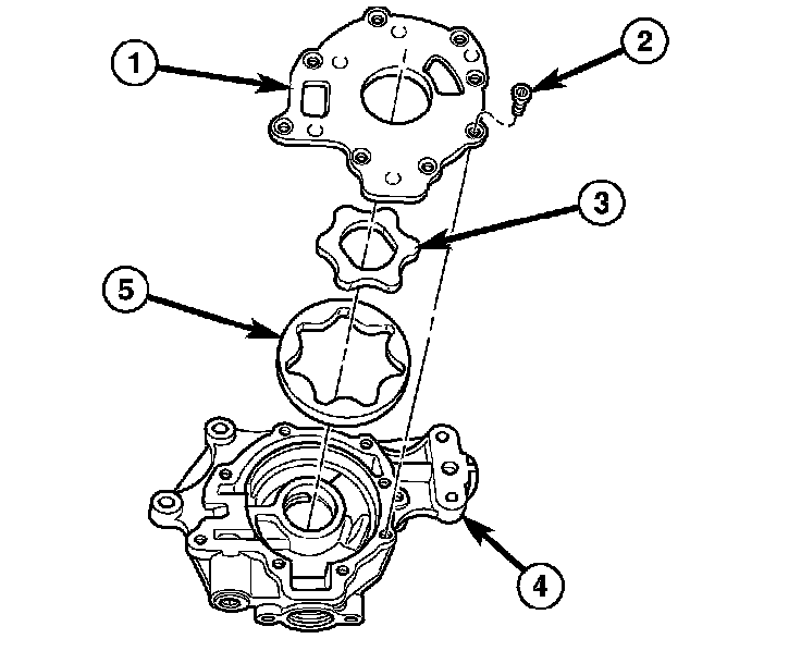 2. Remove inner pump rotor (3) and outer pump rotor (5).
