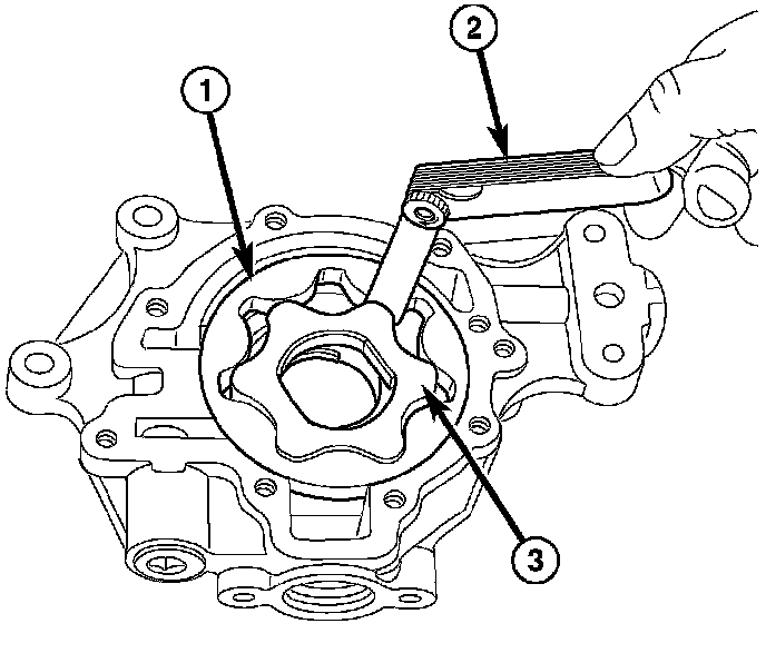 8. Install inner rotor (3) into body. If clearance between inner rotor (3) and outer rotor (1) is 0.20 mm (0.008 inch) or more, replace both rotors.