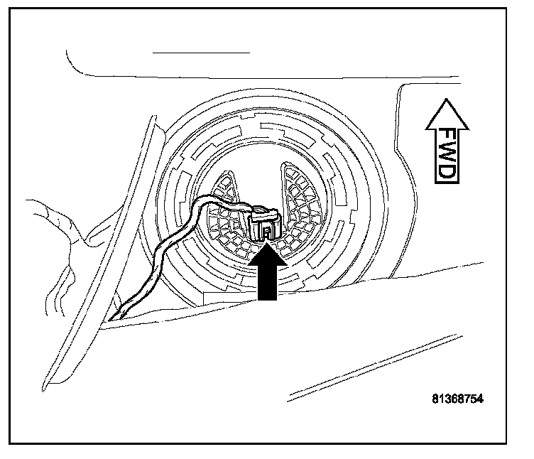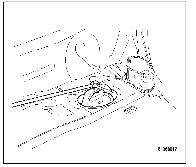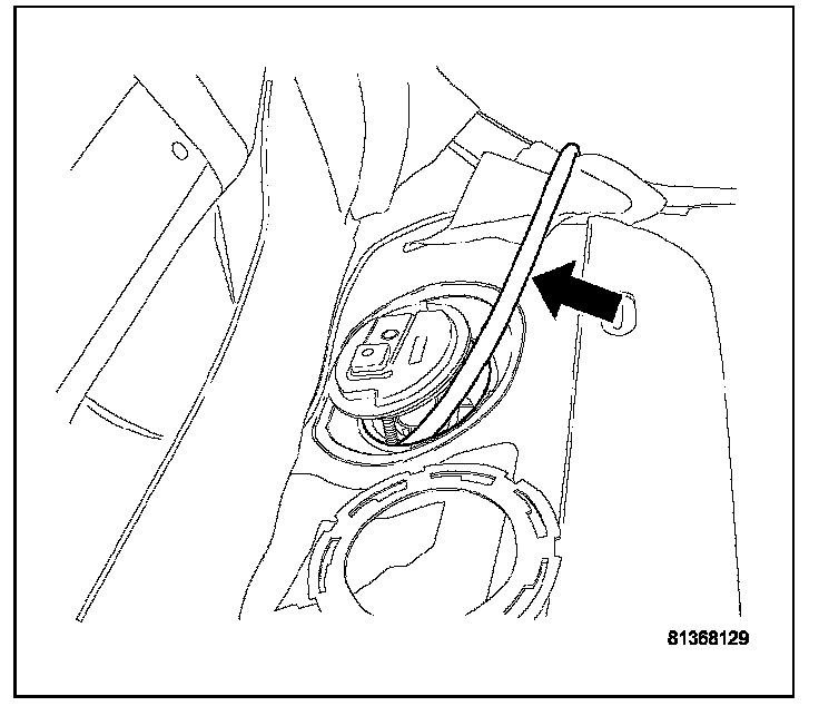 10. Drain fuel from left side of fuel tank. Lift module up enough to push hose into tank and drain. Do not spill fuel in interior of vehicle.