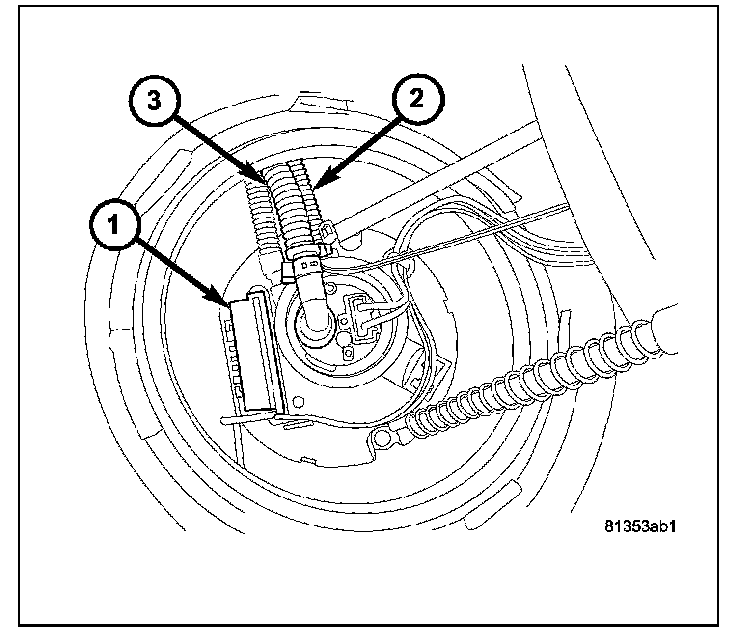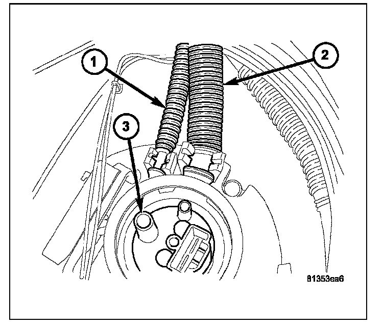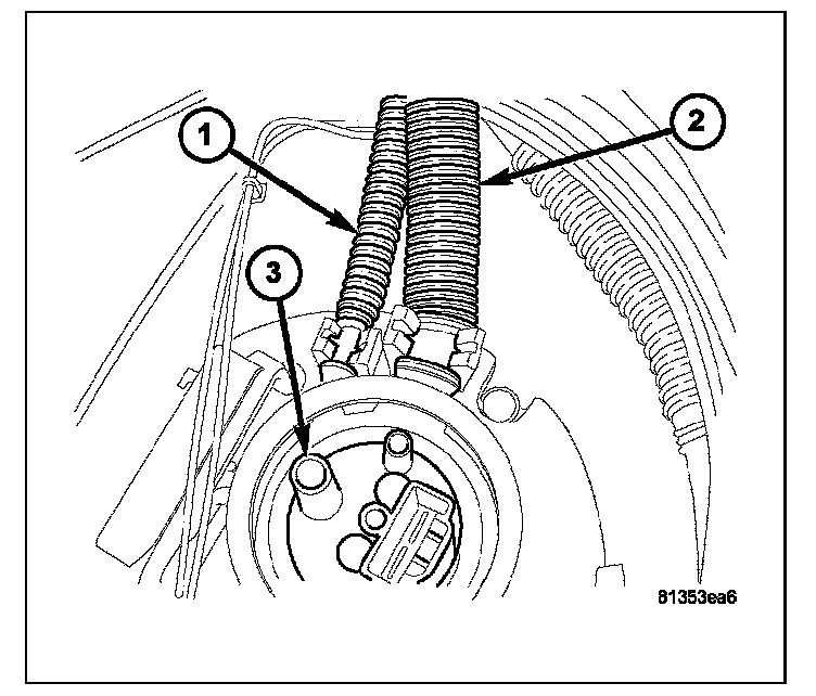 13. The module fuel level sending card (1). The fuel return lines (2). The fuel supply line (3).