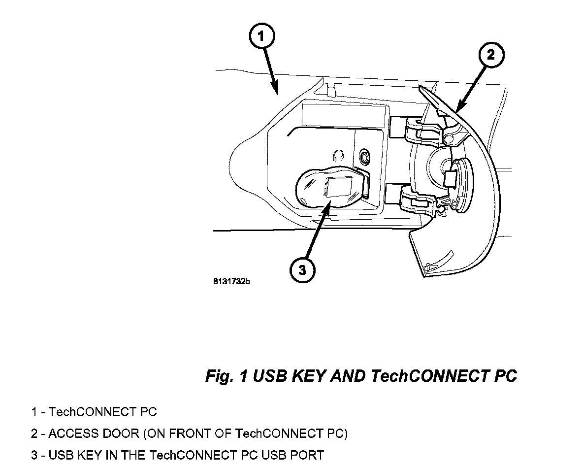 2. Insert the USB Key, into the USB port on the TechCONNECT or equivalent PC (Fig. 1).