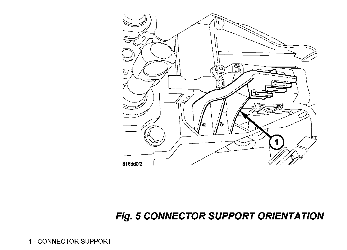 12. Install the replacement connector support, p/n 05183384AA, (Fig. 5).