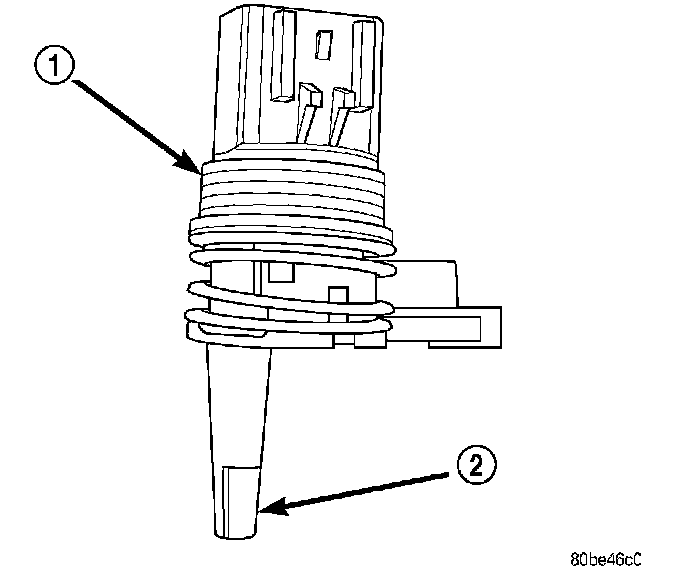 The transmission temperature sensor (2) is located in the transmission range sensor (1) and communicates transmission sump temperature to the TCM.