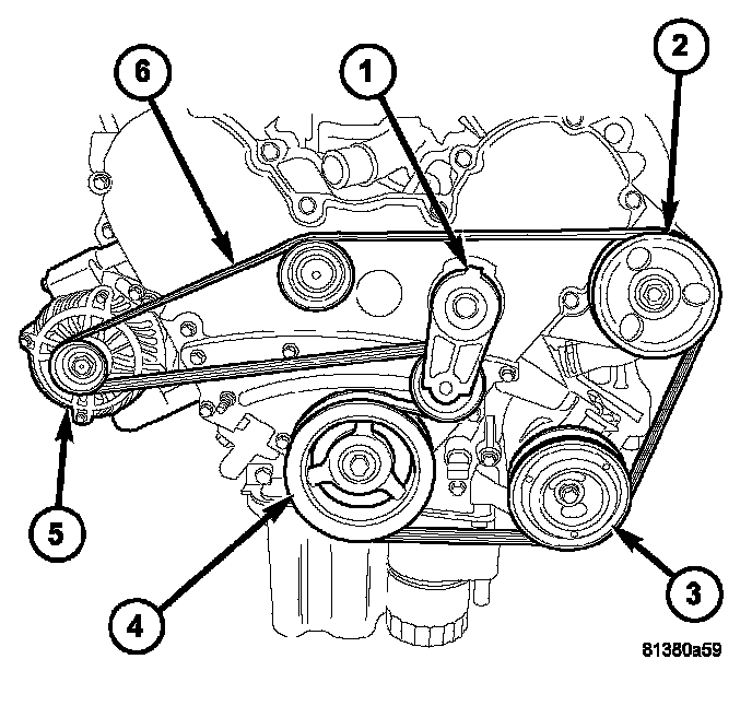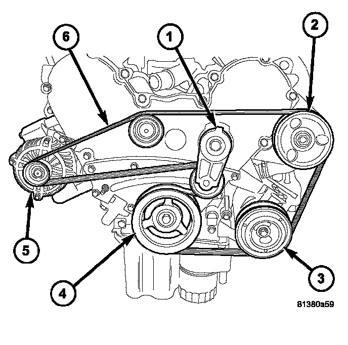 6. Remove accessory drive belt (6).