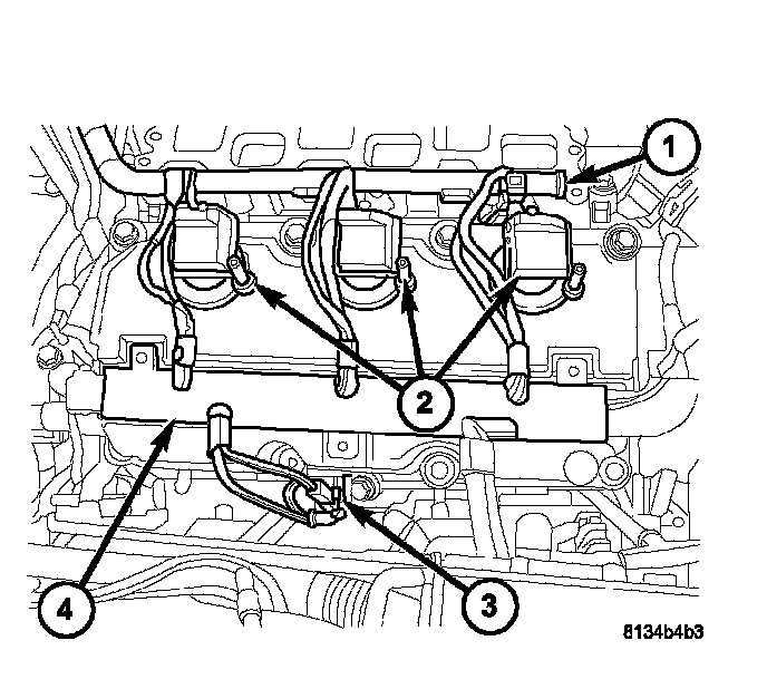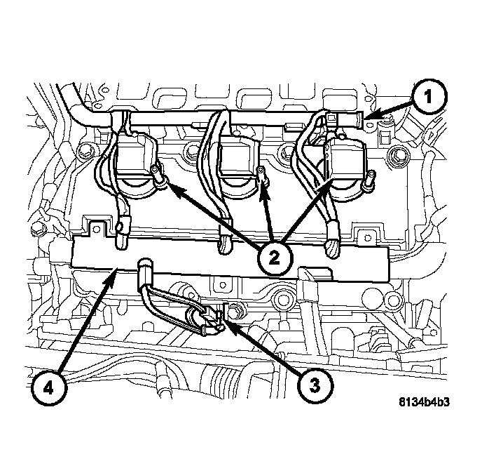 22. Install the fuel rail (1).